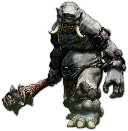 Los Cíclopes, suelen ser perezosos, glotones y estúpidos por naturaleza. De movimientos lentos pero devastadores, se les da caza por sus colmillos prominentes y sus resistentes huesos.