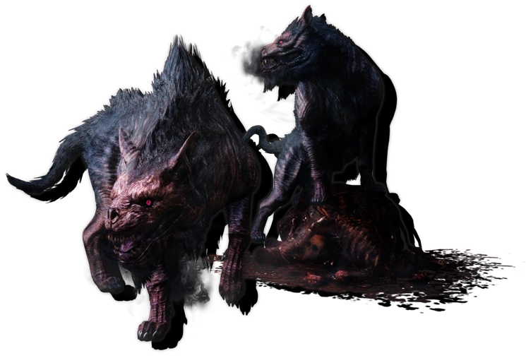 Huargos Carroñeros, del tamaño de un caballo, son cánidos que viven en tierra de dragones. Suelen cazar crías o huevos de guiverno para alimentarse cuando no se están comiendo los restos de las presas marinas que cazan los dragones. Pese a ser carroñeros, son temibles en combate y pueden nadar por la lava, ya que de sus fauces cae lava misma. Su piel es dura y resistente y emiten un fuerte olor a carne quemada.