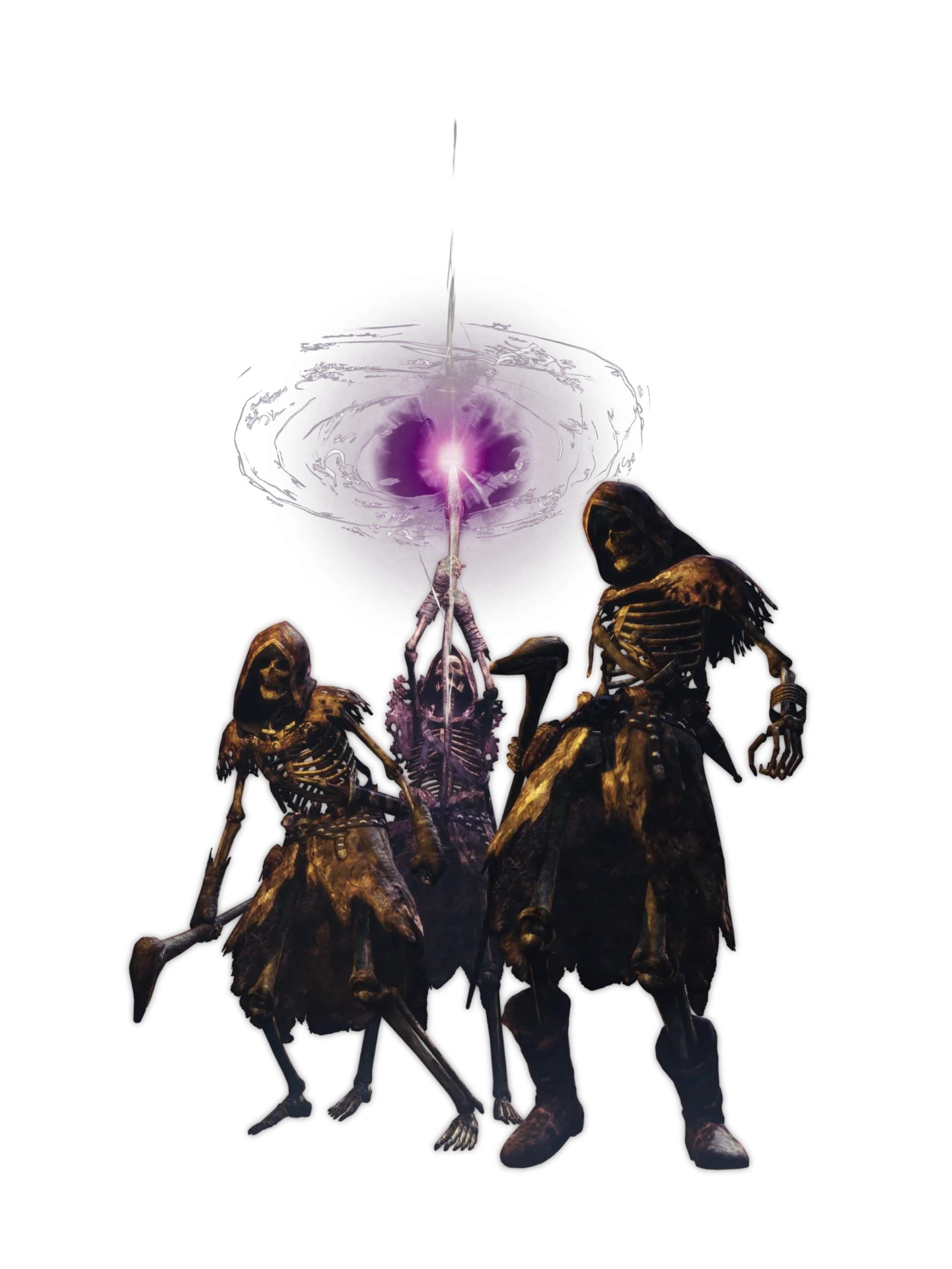 Los magos esqueleto, siempre atacan en la distancia. Pese a ser frágiles en cuerpo a cuerpo, el problema es llegar a acercarte a ellos, suelen usar conjuros que afectan a las capacidades cognitivas de sus v´íctimas y siempre lideran a un pequeño grupo de esqueletos soldado. Están por todo Ruddrack y son fruto de los resquicios de corrupción de la guerra de los cuatro divinos y su impacto en los humanos.
